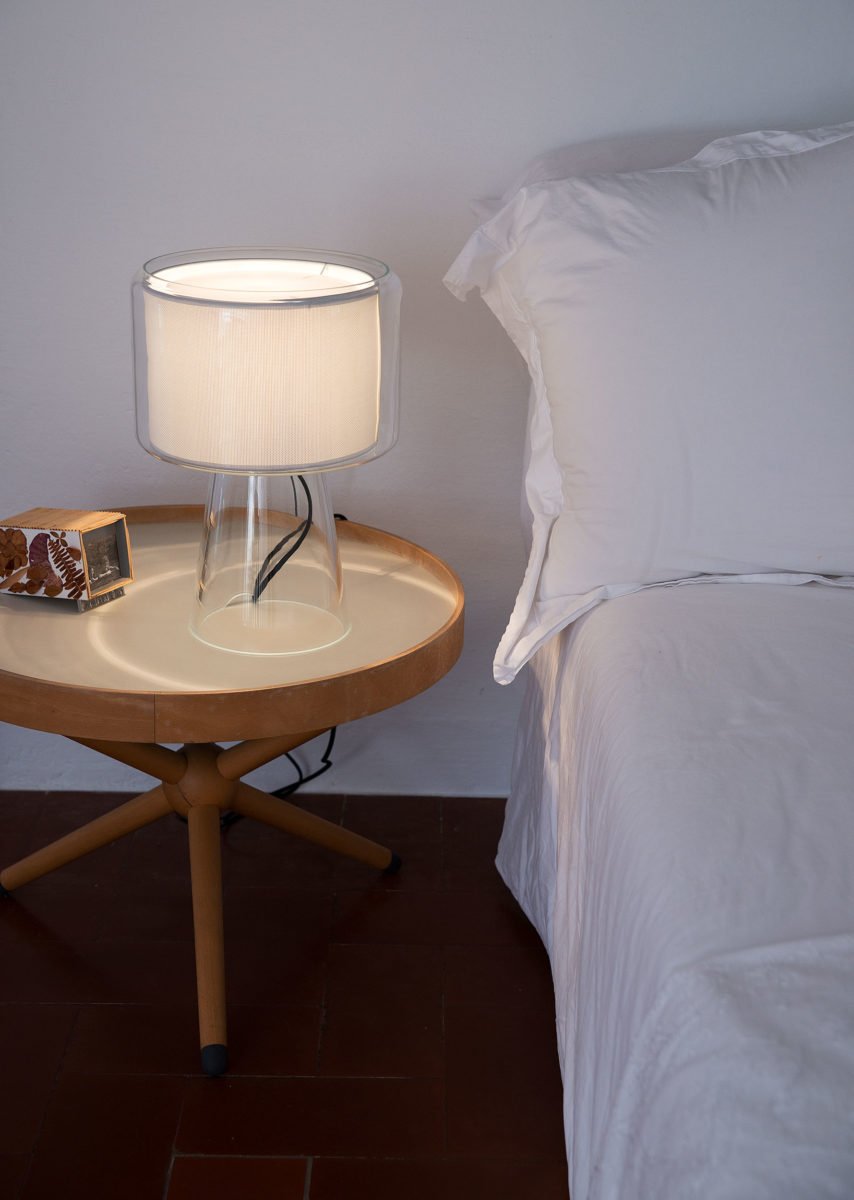 Marset Mercer to wyjątkowa lampka stołowa, która zachwyca subtelnym połączeniem materiałów i form. Jej charakterystyczną cechą jest elegancki szklany klosz, wewnątrz którego znajduje się zawieszony tekstylny abażur. Efekt “lampa w lampie” tworzy niezwykłą grę światła i faktur, dodając wnętrzu przytulności i klasy.