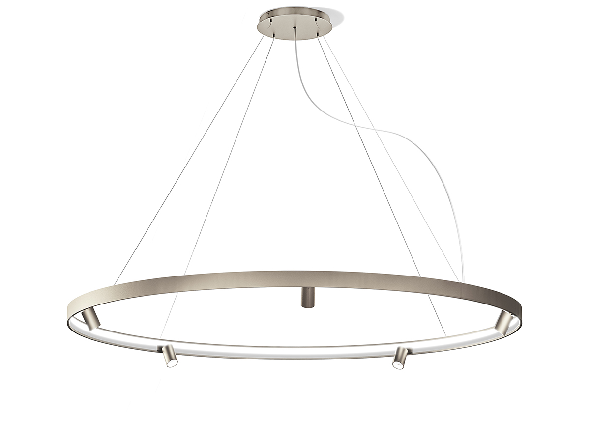Lampa wisząca Panzeri Arena to propozycja dla osób, które cenią nowoczesne wzornictwo i elegancką prostotę. Jej harmonijna forma przyciąga uwagę, a jednocześnie pozostaje na tyle uniwersalna, by doskonale komponować się zarówno z nowoczesnymi, jak i bardziej klasycznymi aranżacjami wnętrz.